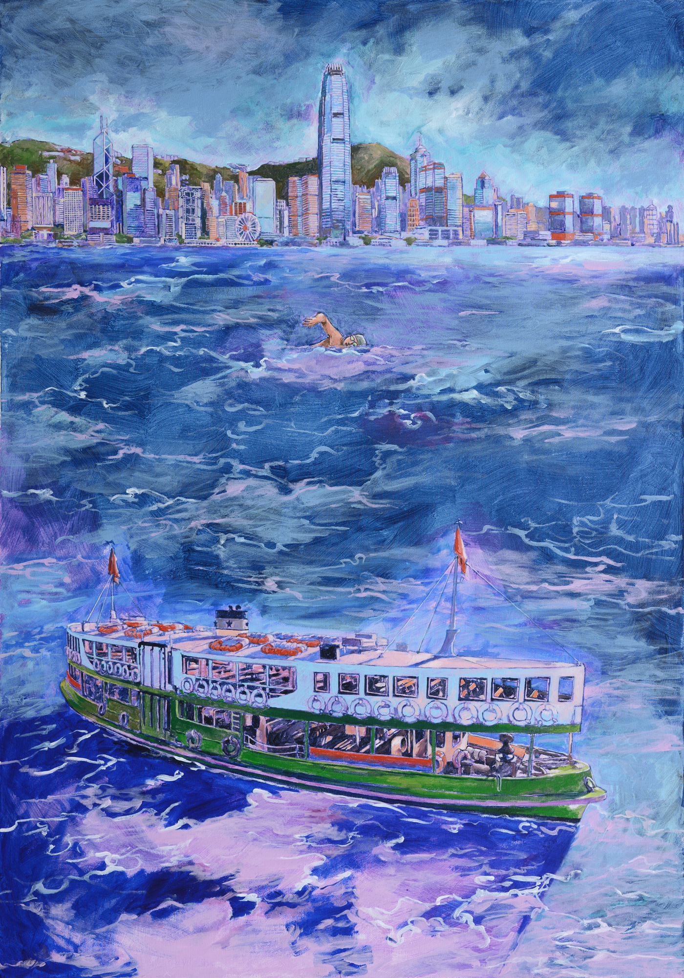 《1998年的行運一條龍於鴻運茶餐廳》, 塑膠彩布本, 152cm(H) x 100cm(W), 2024