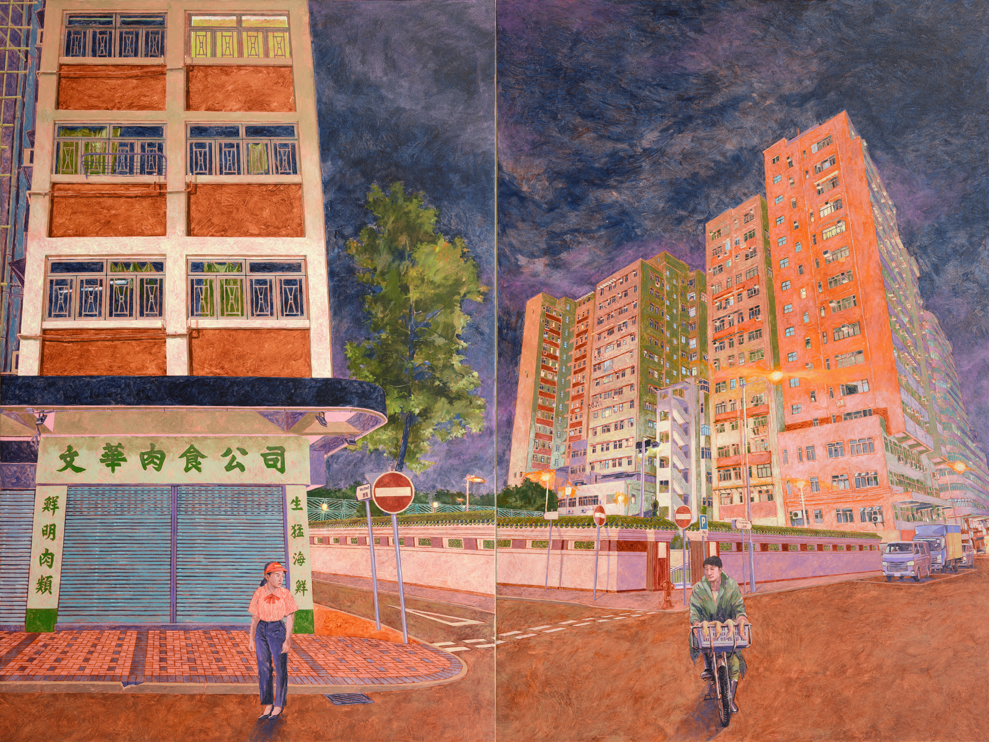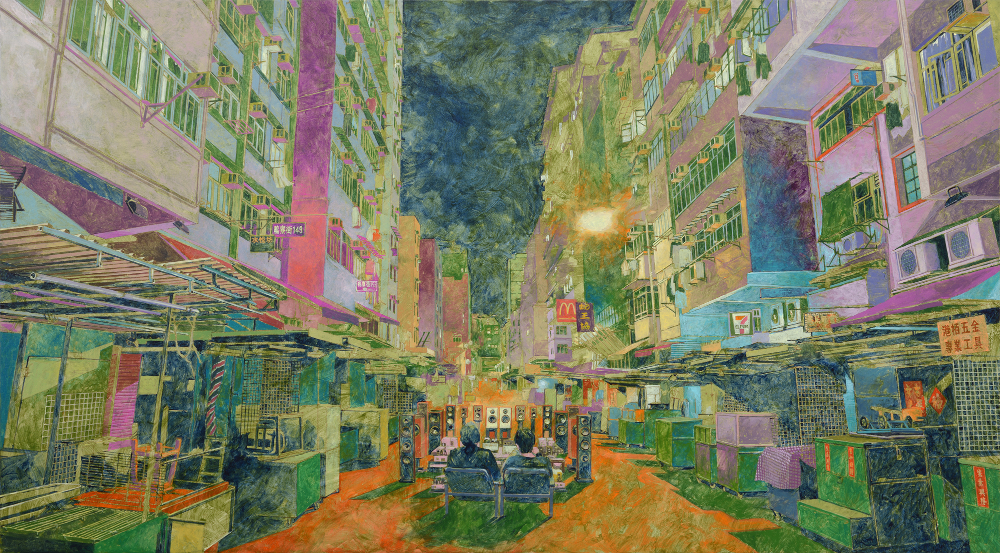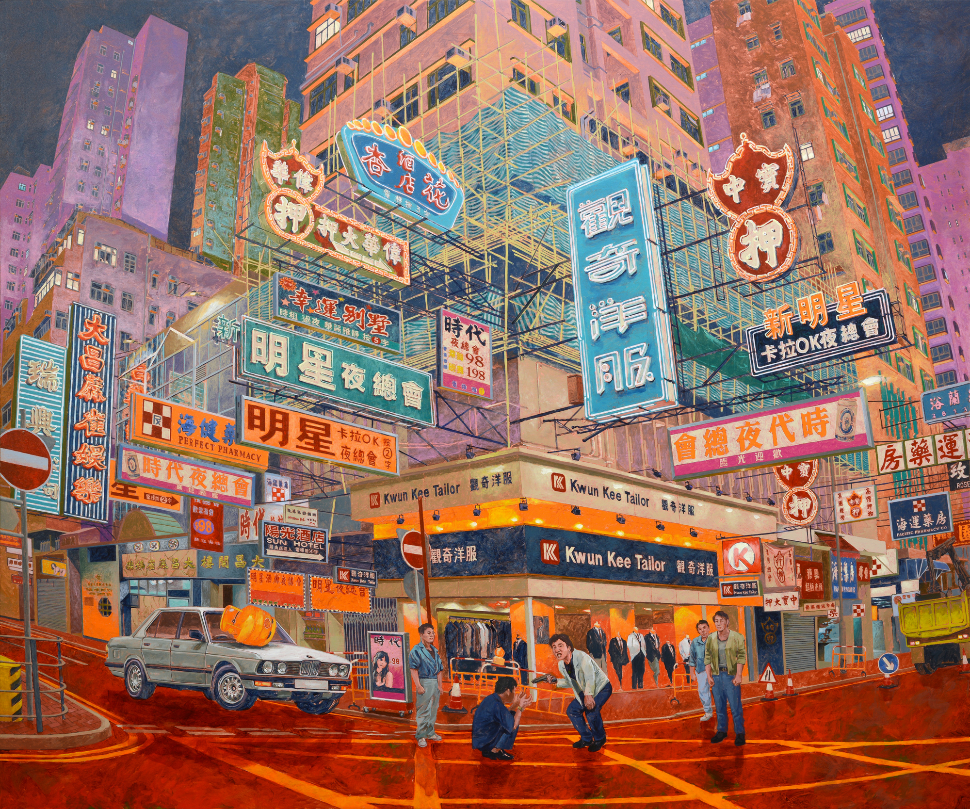 From Beijing with Love 1994, at Mong Kok Road 2011, acrylic on canvas, 100cm(H) x 150cm(W), 2023